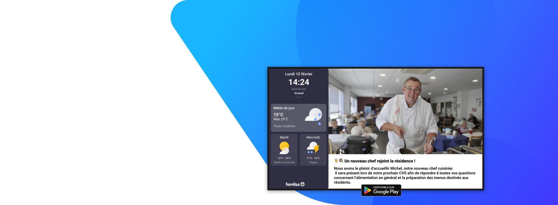 "Familizz has transformed our relationship with the families of EHPAD residents. Relatives receive photos of activities, personalized messages and everyday anecdotes. This digital connection brings comfort and presence, recreating a precious link between families and their elders."